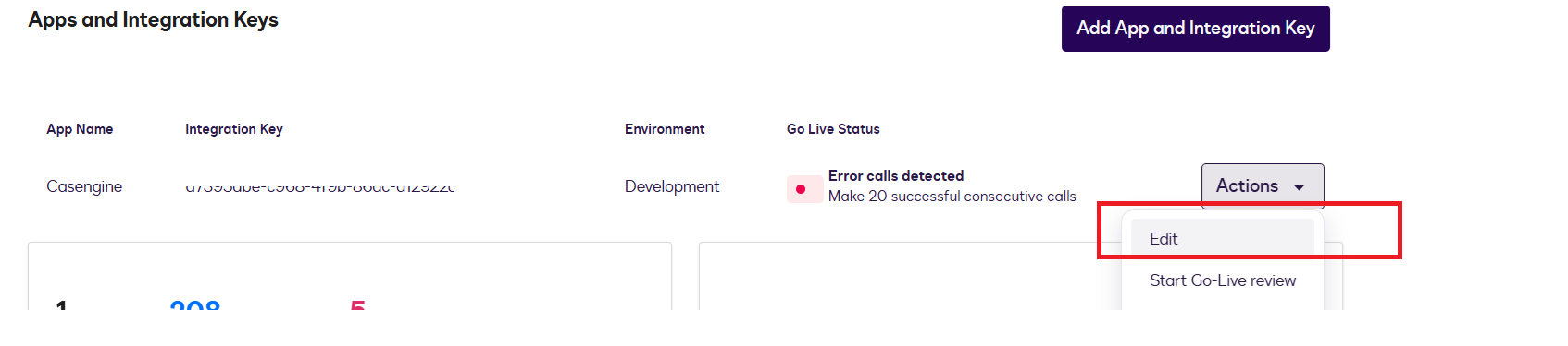 - Under your newly created app, go to Actions > Edit Service Integration.