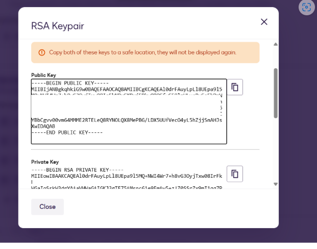 - Copy the private key generated and save it as a file named