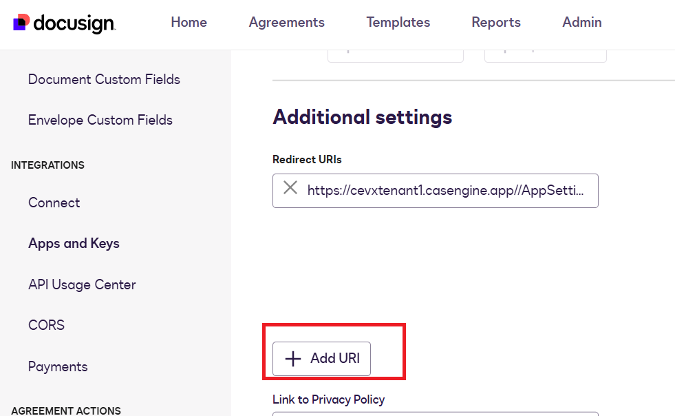 - Add URI : https://cevxtenant1.casengine.app//AppSetting/AppSetting