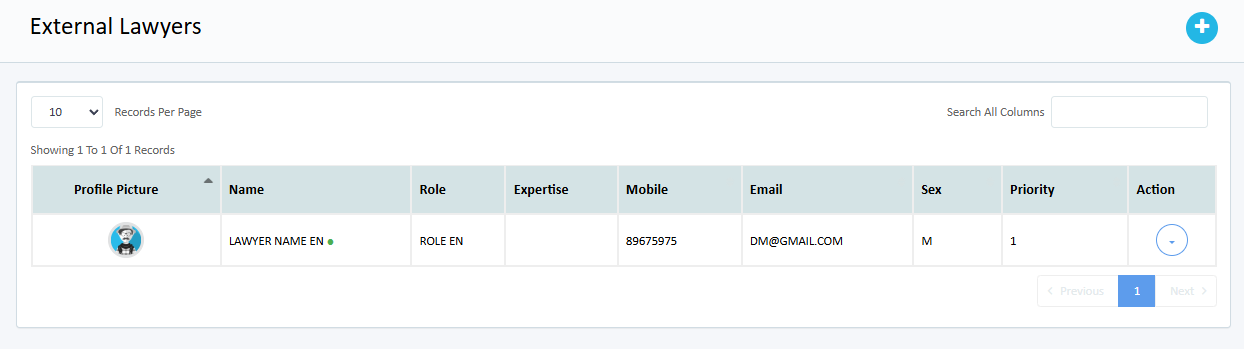 - On the External Lawyers page, click the Plus (+) button in the top right corner