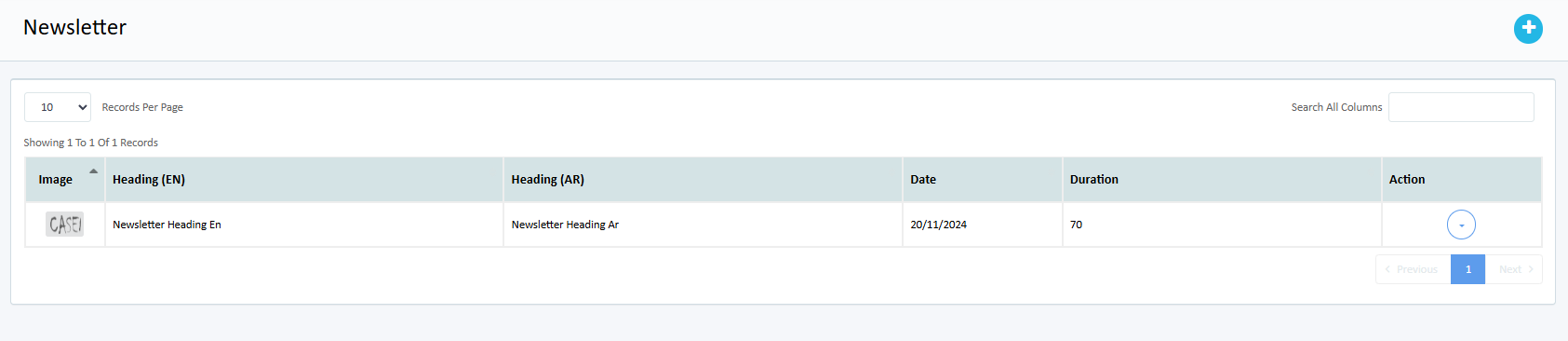 - Add new newsletters by clicking the Plus (+) button in the top right corner