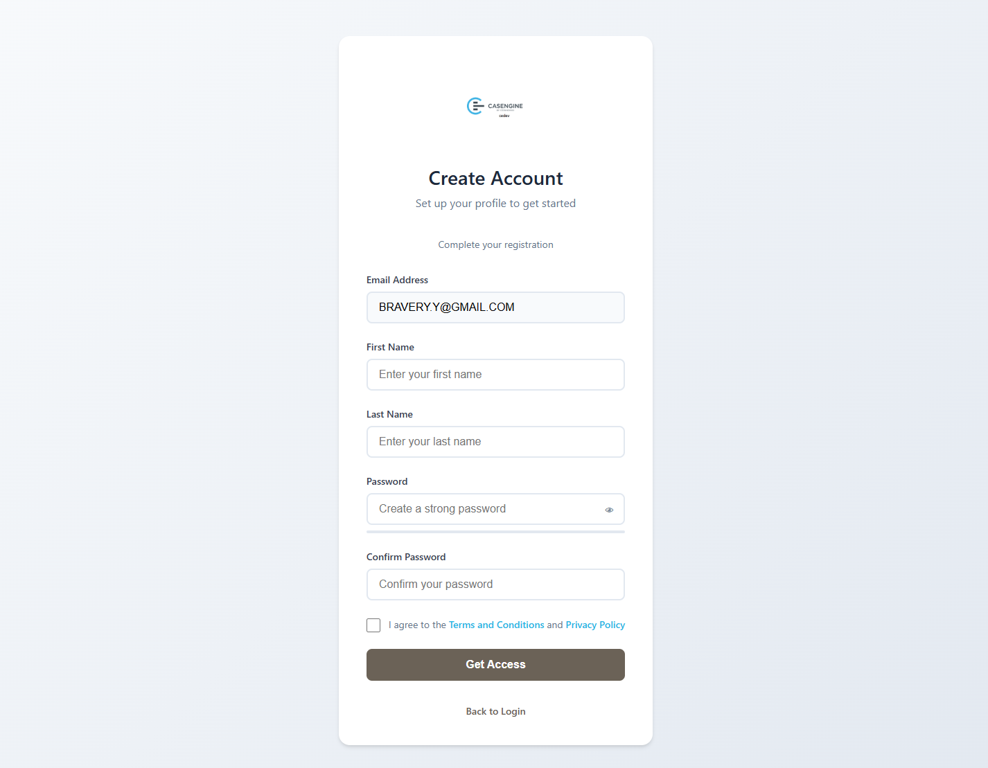 - Click "Get Access" to complete registration and automatically log in
