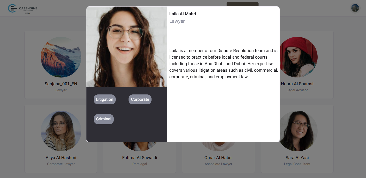 - Browse all available lawyers in grid format