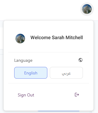 - Toggle between English and Arabic language interface