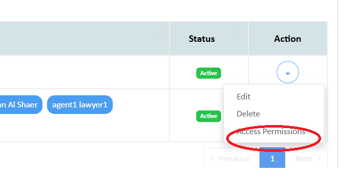 From the Action menu, click Access Permissions.
