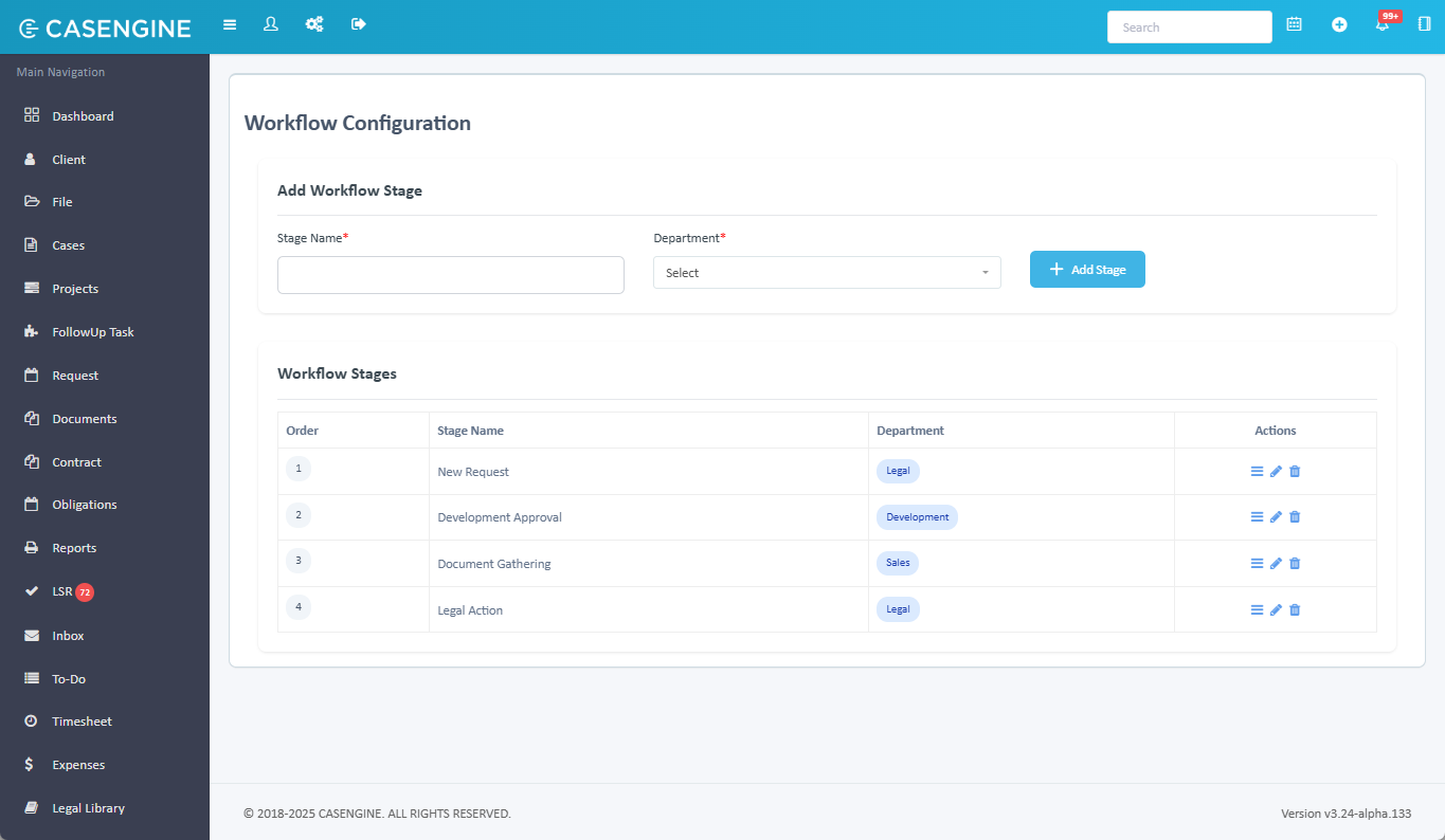 - Add Workflow Stage: Form to create new workflow stages